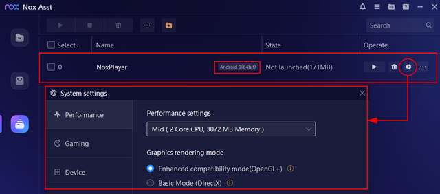 Step: 1 Open Nox Asst and choose android version of your choice.