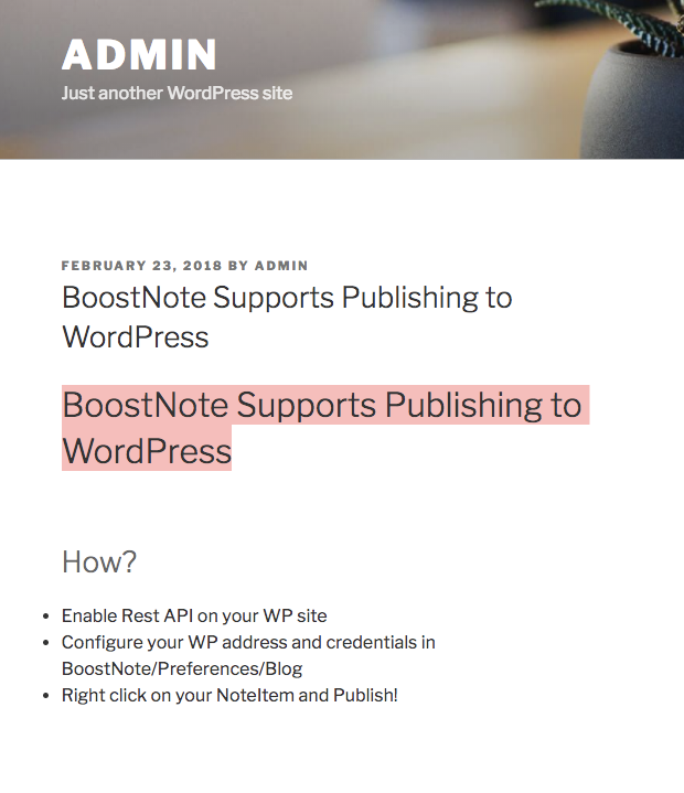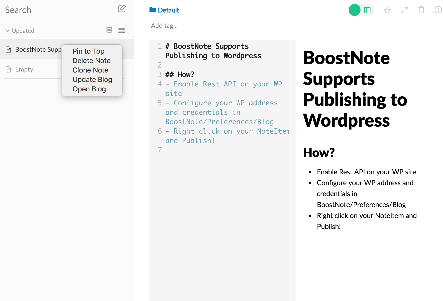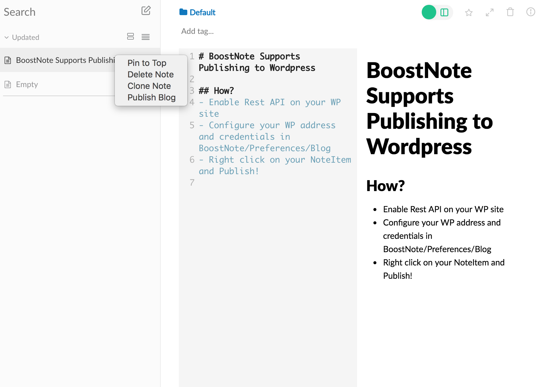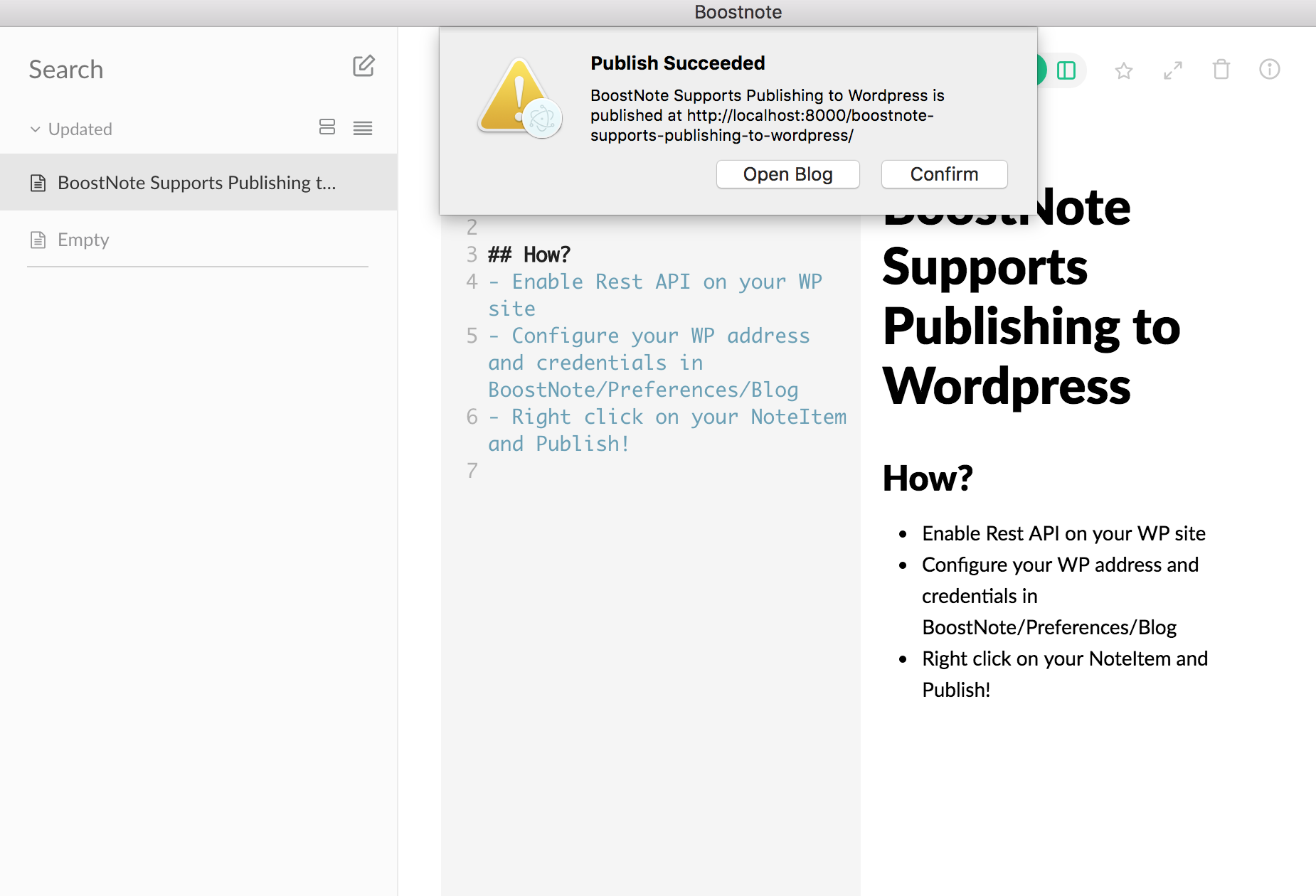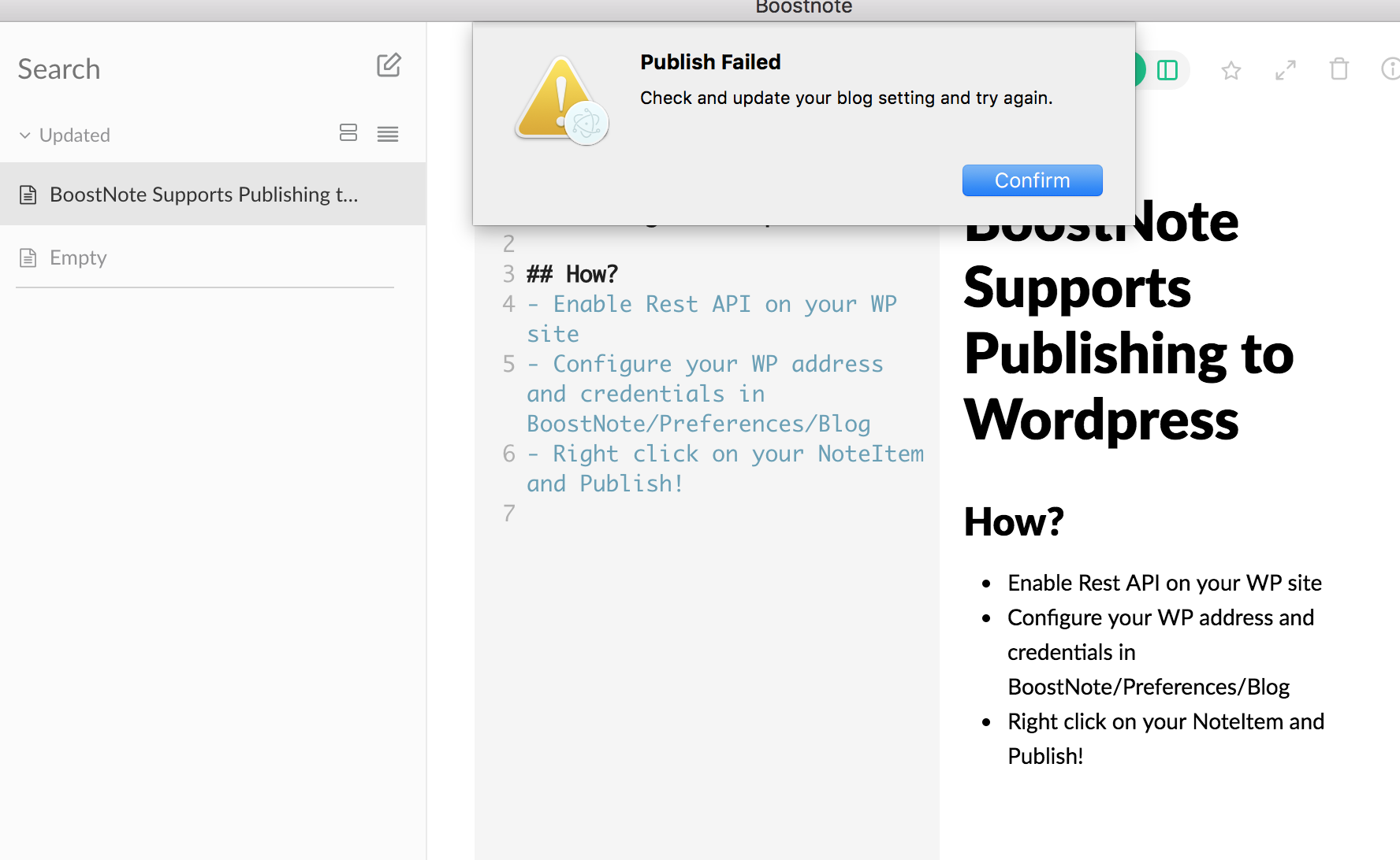 @lurong-hkg this feature is quite useful. But I got one issue. The tag I made at Boostnote is never synced to Wordpress. Can you fix that? |