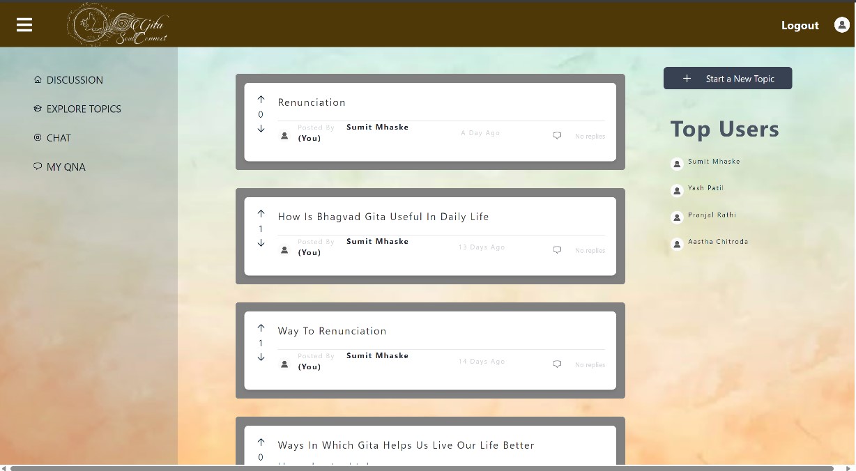 Discussion Forum: Users are connected with like-minded individuals, creating a community where they can share thoughts, beliefs, and discuss their spiritual journey.