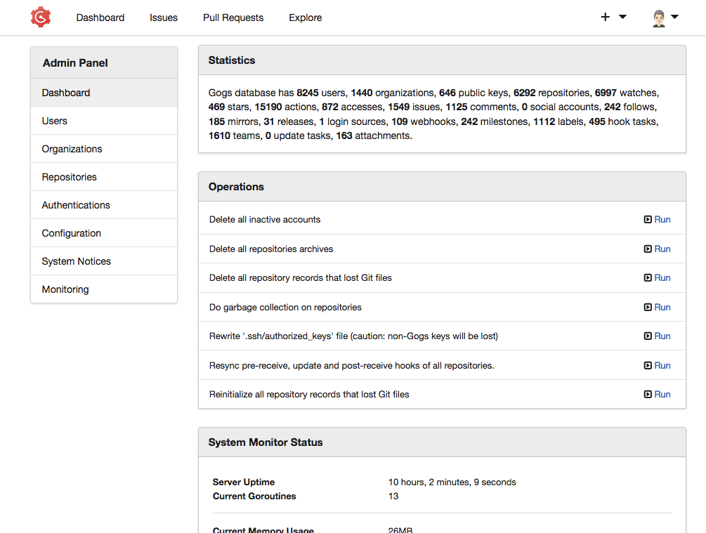 The goal of this project is to make the easiest, fastest, and most painless way of setting up a self-hosted Git service. With Go, this can be done with an independent binary distribution across ALL platforms that Go supports, including Linux, macOS, Windows and ARM.