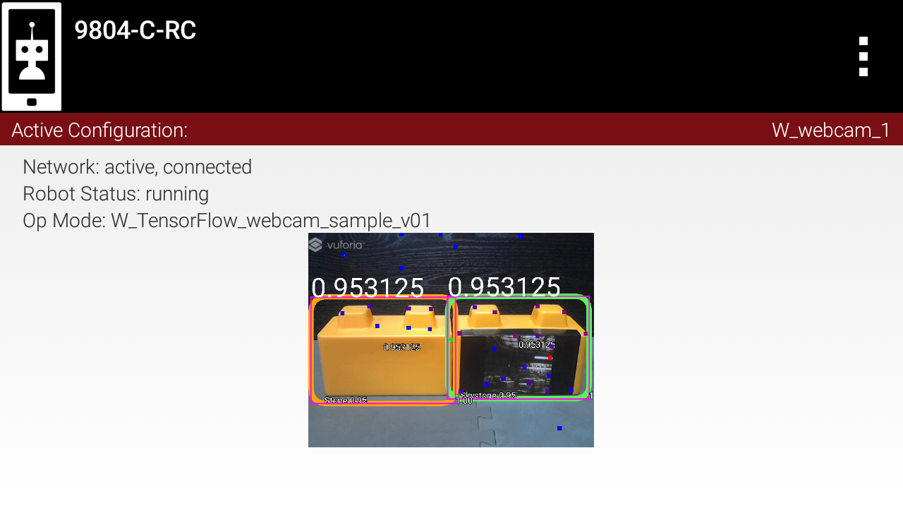 Stones and Skystones may appear together in the camera's view. Here is an example preview on the RC phone, followed by a close-up.