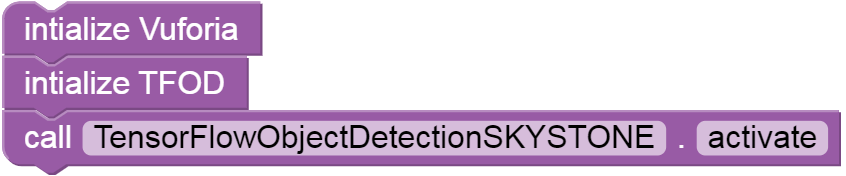 The first Block initiates Vuforia, which will provide the camera's image data to TensorFlow.