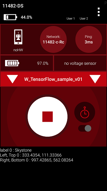 This and other information about the detected object can be used to navigate towards the object, such as a Stone or Skystone. The values are available from the Blocks menu, under the Recognition submenu described above. This robot driving action is not part of the sample Op Mode, but is described below in "Navigation Example".