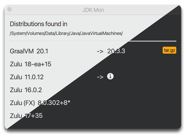 (On MacOS you need at least version 11.0 to run JDKMon)