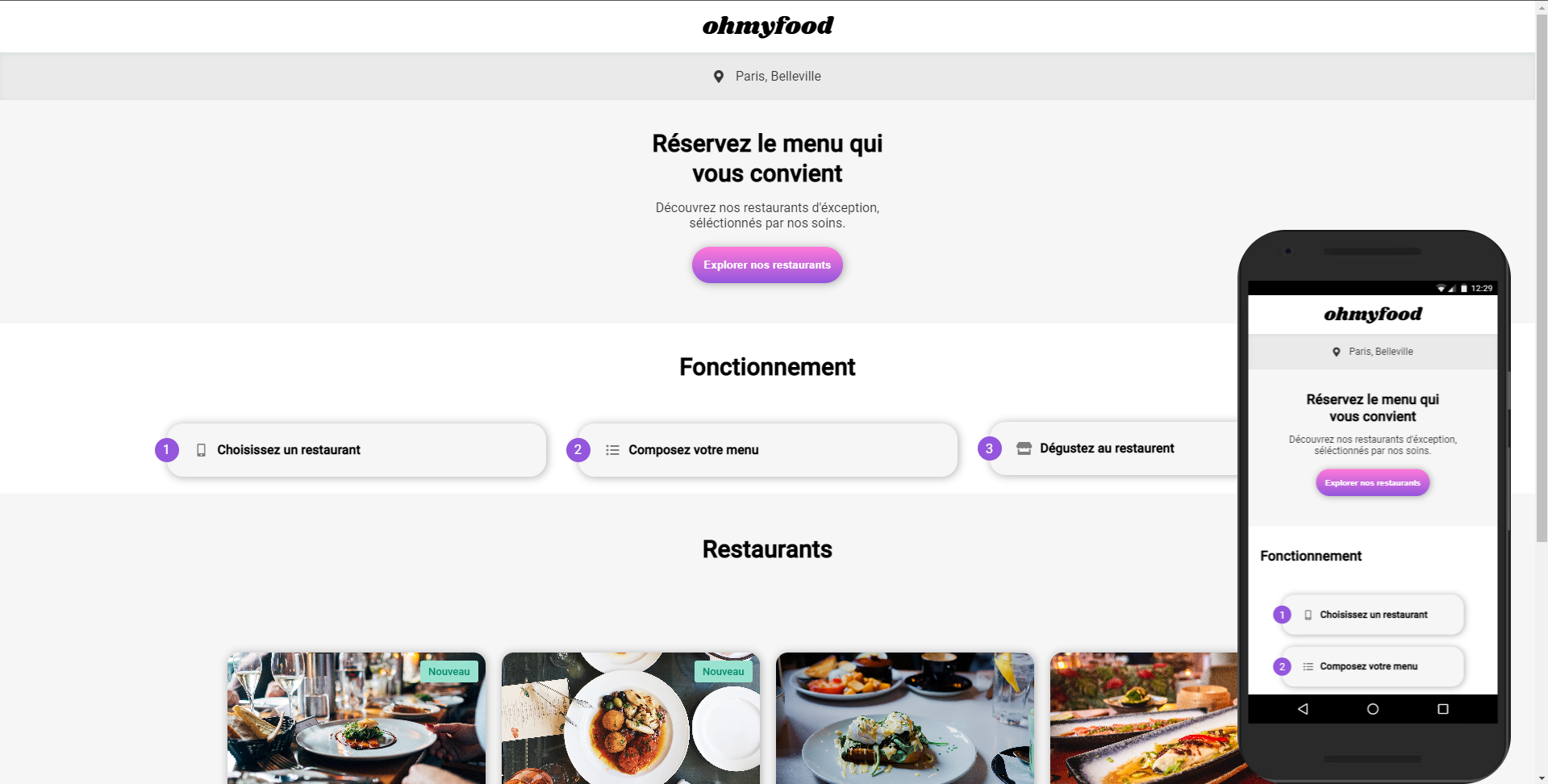 OhMyFood is a fake project developed in HTML and SASS for the openclassroom training course.
