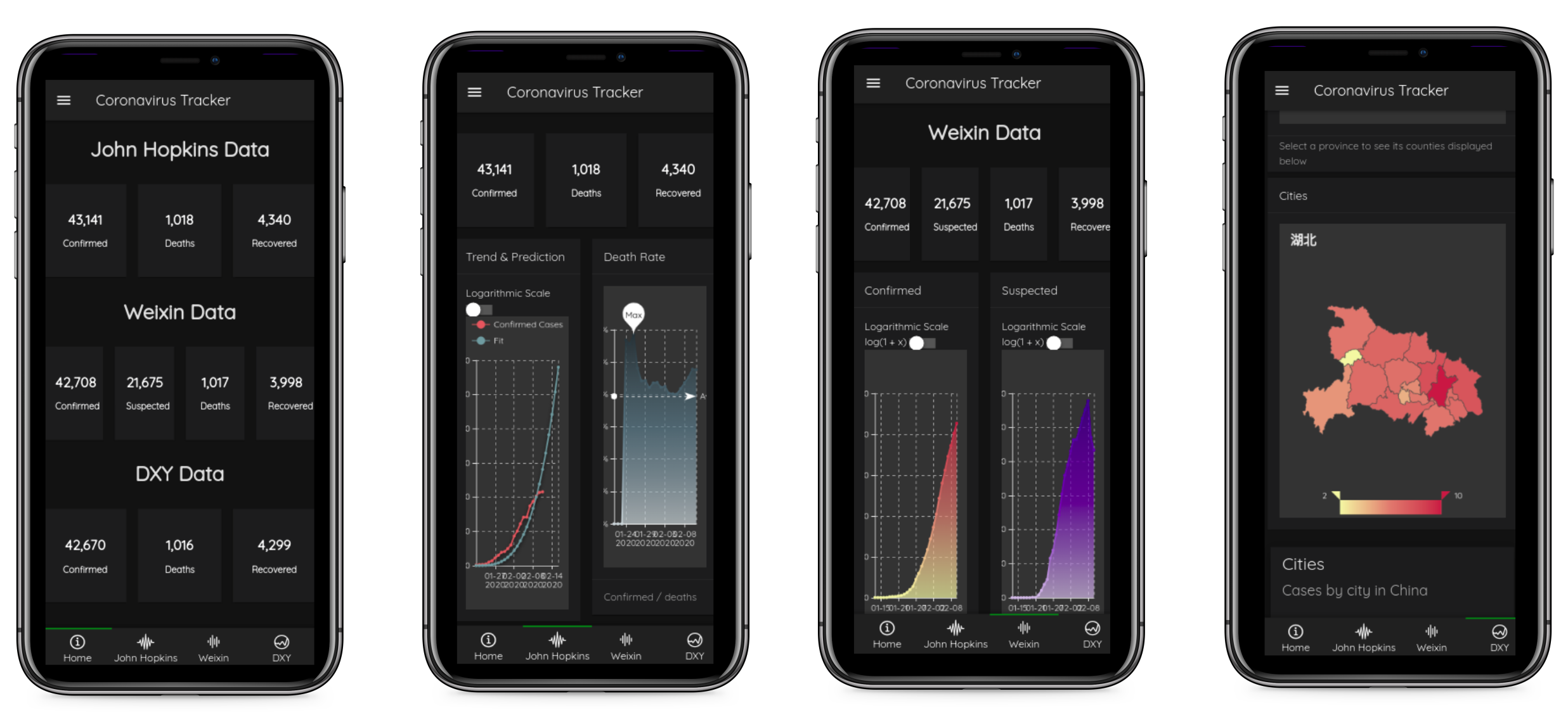 Dashboard to track the spread of the coronavirus, based on three data sources, built with shinyMobile and echarts4r.