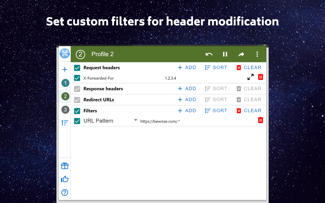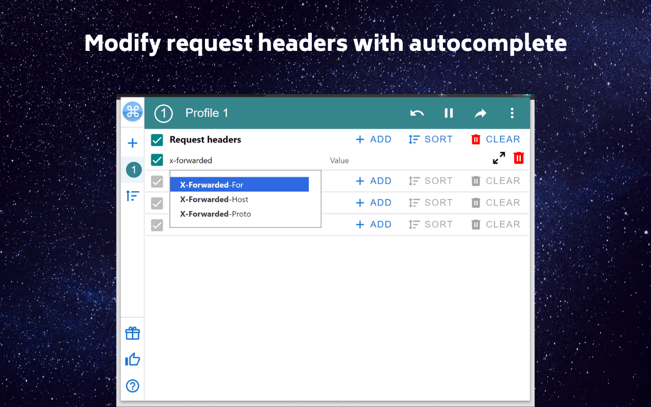 Feel free to send pull requests to add new features to ModHeader. It will benefit everyone! That said, I reserve the rights to reject pull requests that does not seem useful, or if they add too much complexity for very little benefits.