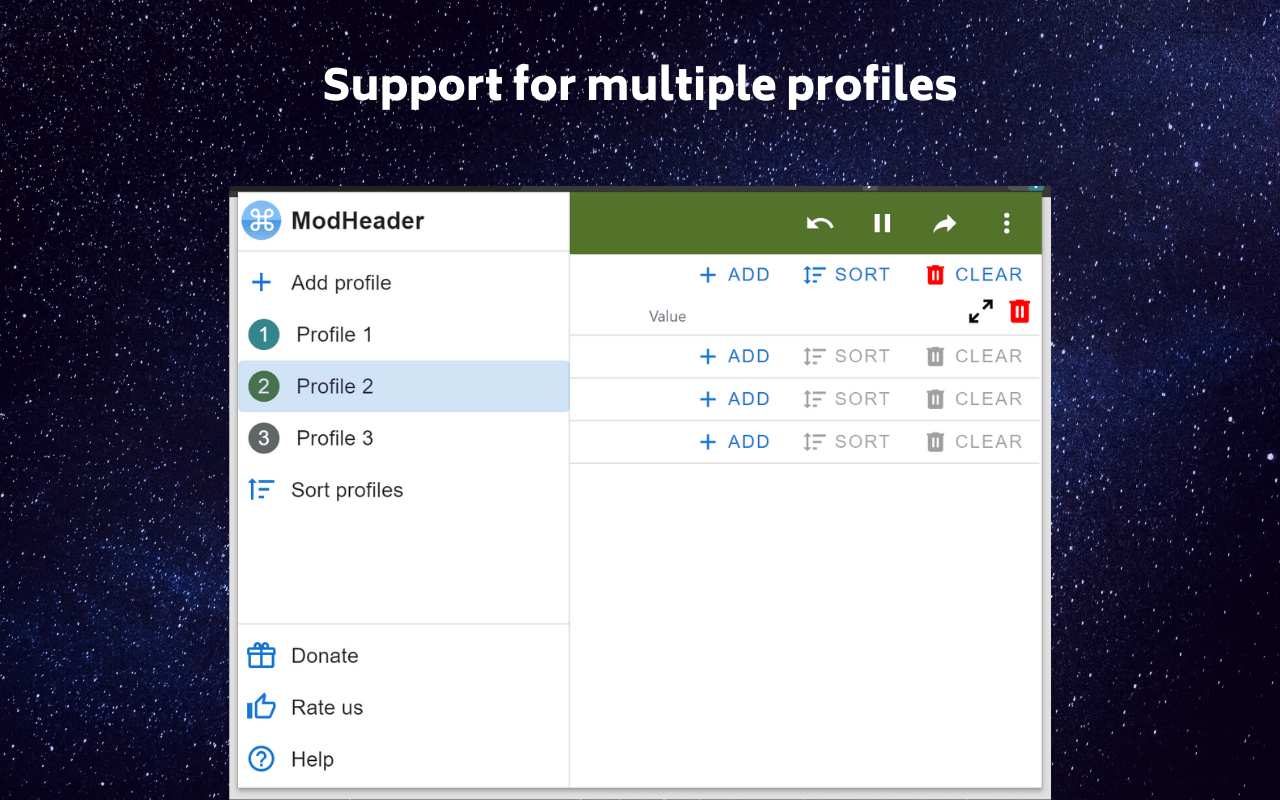 If you find ModHeader useful, please consider making a donation. If you use it for your company project, please ask your company to make a monthly donation!