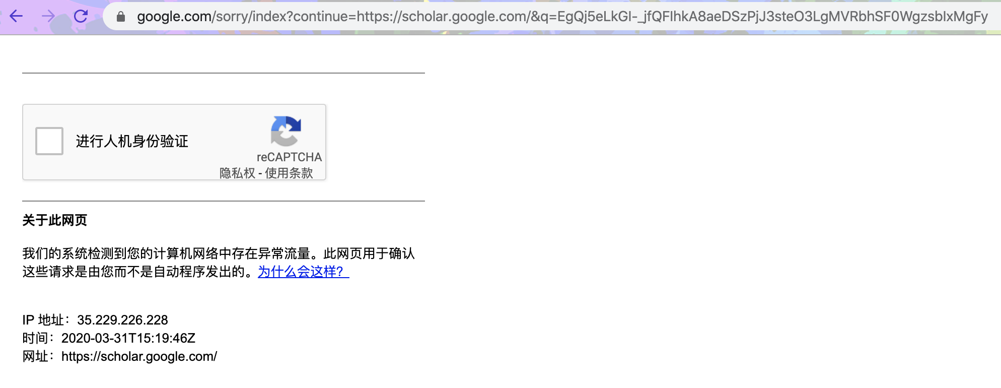 Due to the network problem in our country, I always get this warning "Unusual traffic from your computer network", which also required me to perform reCAPTCHA validation.
