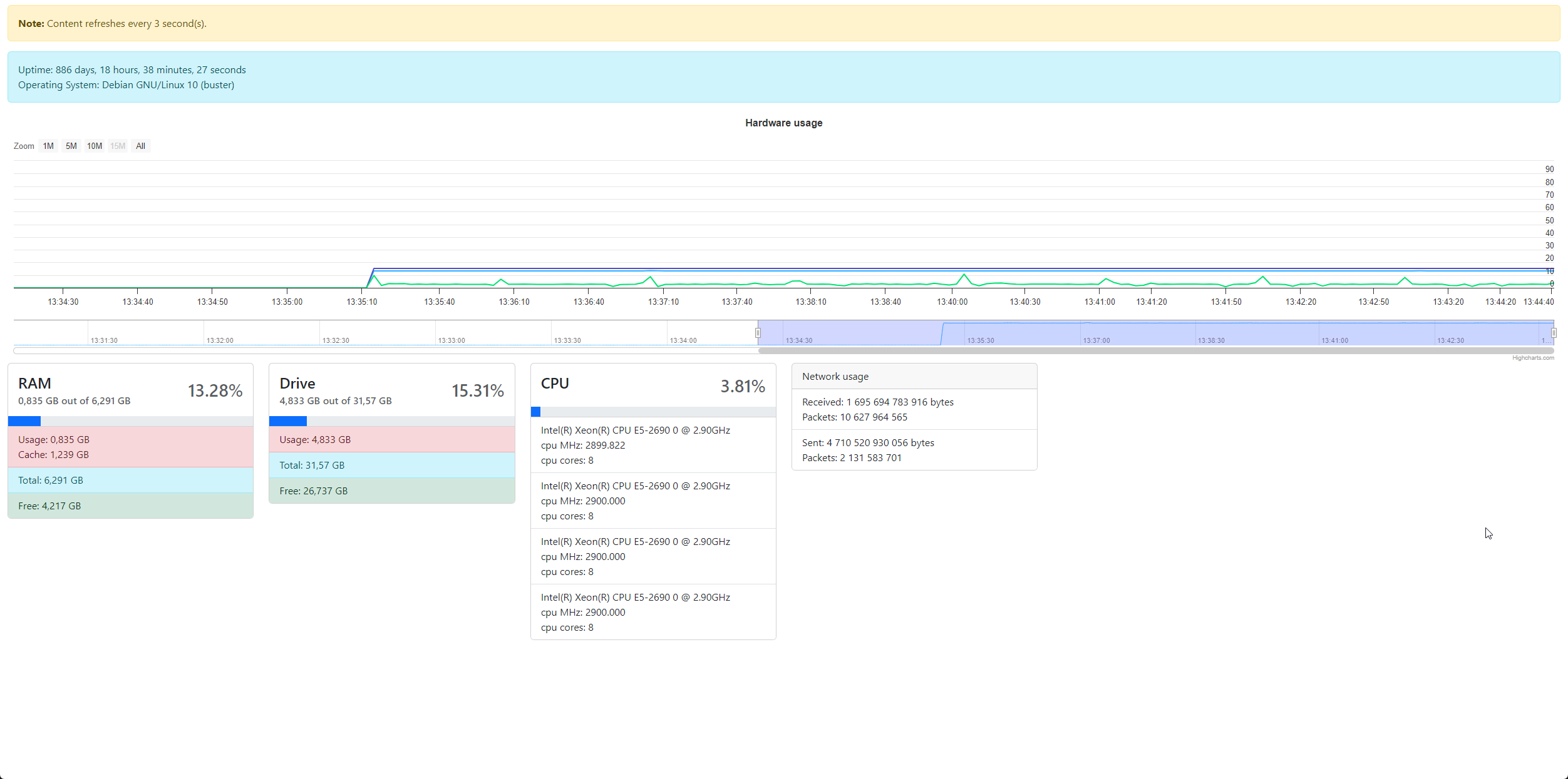 A very simple, single monitoring page that fetches real-time info about your system. Does not save history.