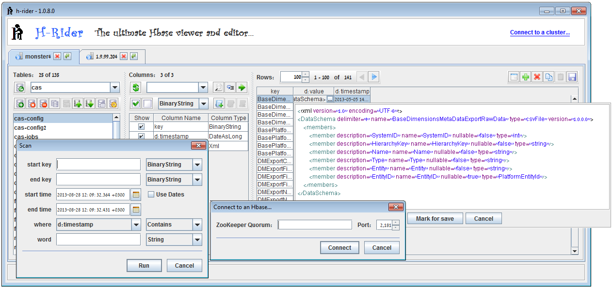 The h-rider is a UI application that provides an easier way to view or manipulate the data saved in the - HBase™ - distributed database that supports structured data storage for large tables.
