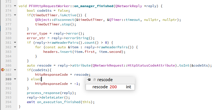 The constructor initializes the http response code to -1, which indicates that it has not been received/determined yet. However, on_manager_finished sets it to 0 in the same case (the QVariant returned is invalid and thus toInt returns 0). I suggest setting -1 here as well.