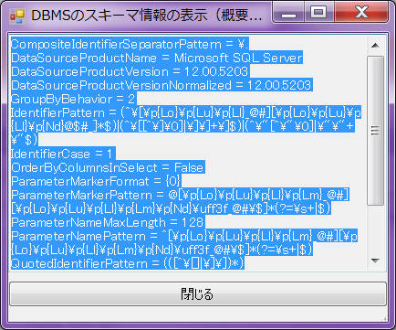 If database information, such as connection string, are correct, Display (Summary Information) dialog of schema information of DBMS screen is shown.