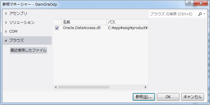 C:\root\programs\C#\Frameworks\Infrastructure\Build\DamOraOdp.dllを追加します。
