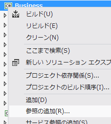 Businessプロジェクトを右クリックし、「参照の追加(R)」を選択します。