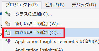 既存プロジェクトの追加ダイアログで、