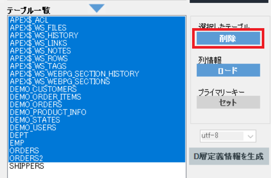 「D層定義情報を生成」ボタンが活性化されますので、出力エンコーディングとして「utf-8」を選択し、「D層定義情報を生成」ボタンをクリックします。