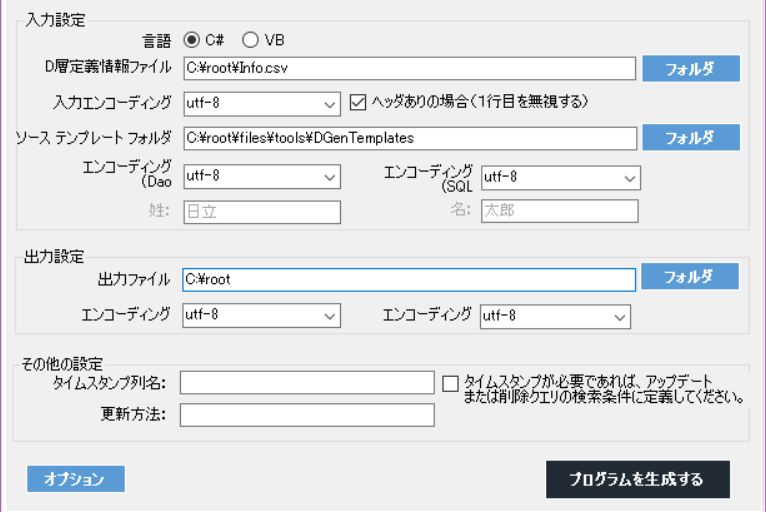 C:\root\programs\C#\Frameworks\DaoGen_Tool\bin\Debug\DaoGen_Tool.exeを実行し、D 層自動生成ツールを起動します。 -