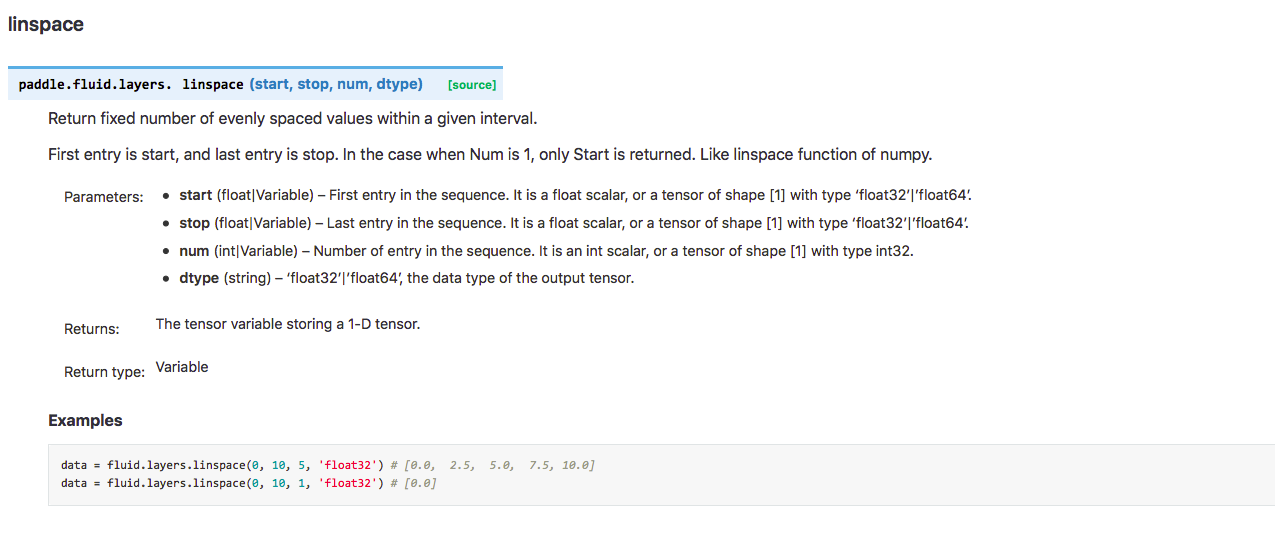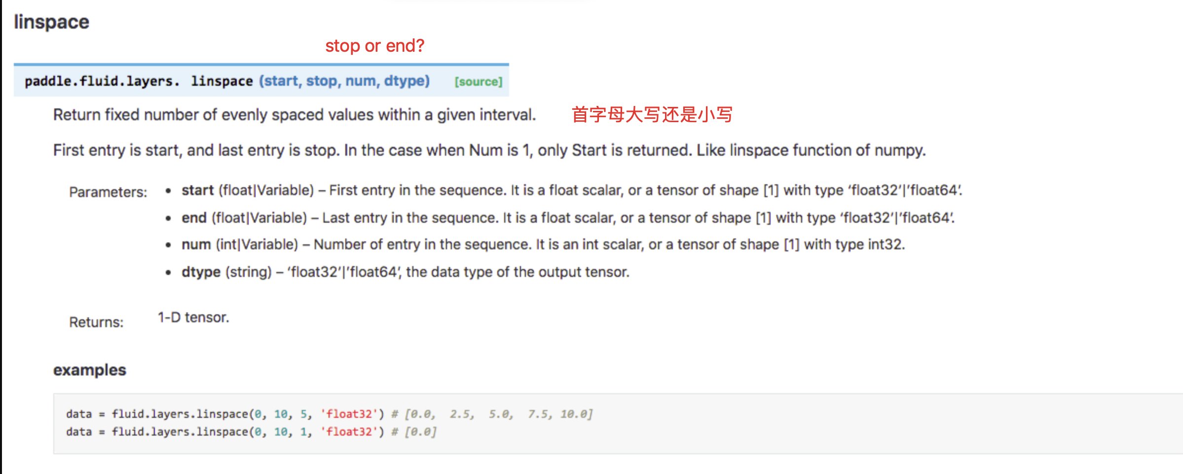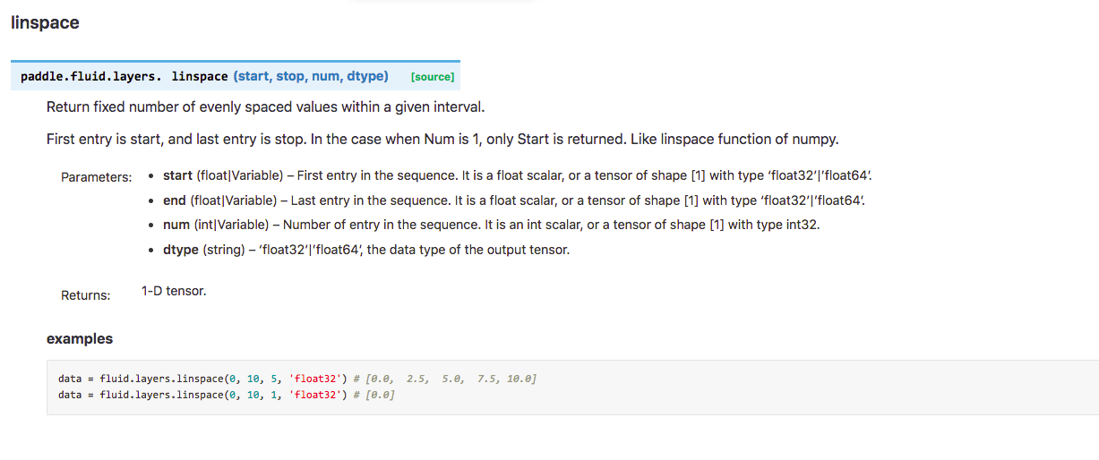add linspace, modify interface comments in tensor.py, merge with develop branch