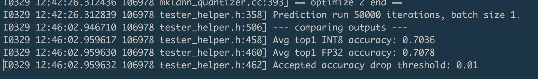| LOG(INFO) << "FP32 & INT8 prediction run: batch_size " << FLAGS_batch_size | ||