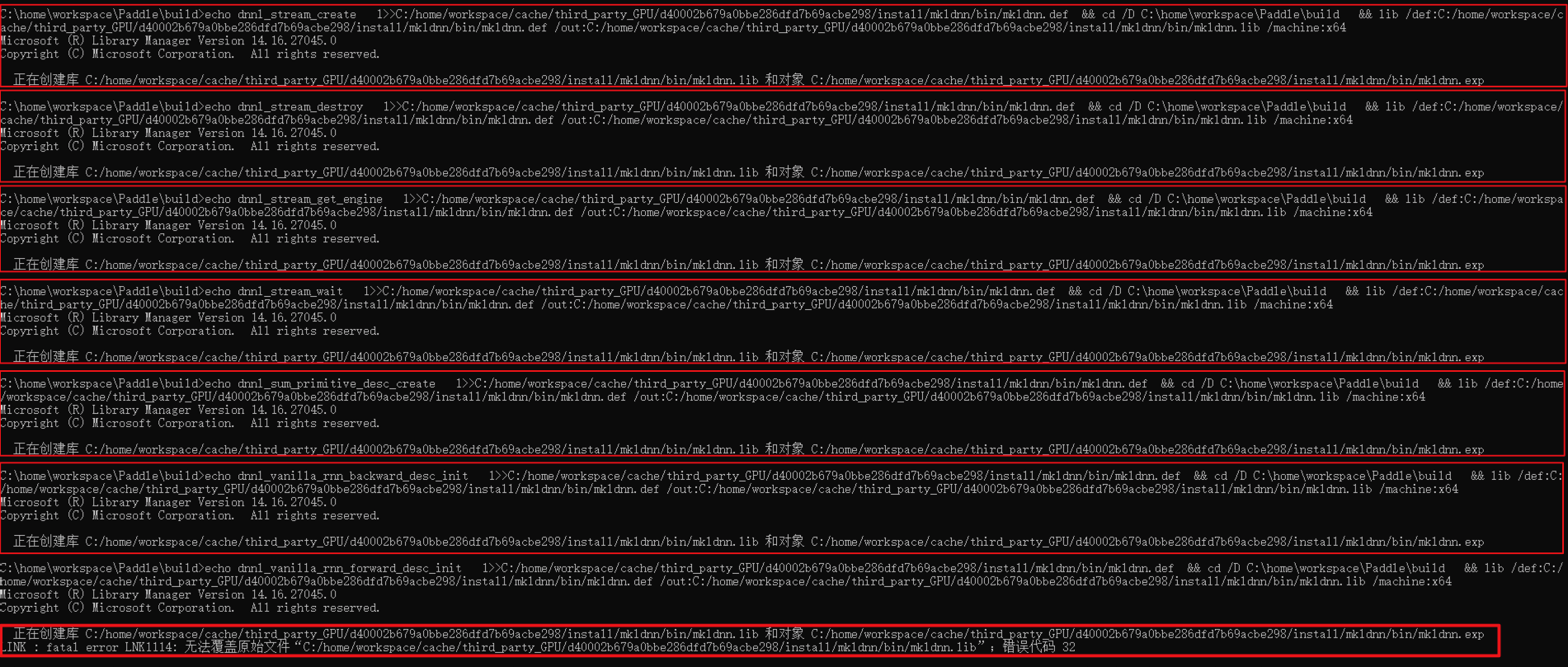 lib /def:${MKLDNN_INSTALL_DIR}/bin/mkldnn.def /out:${MKLDNN_INSTALL_DIR}/bin/mkldnn.lib /machine:x64命令也误并入到循环体中,导致刷屏创建几百次mkldnn.lib,容易出错、耗时;2. 修改warpct的增量编译bug,第二次编译失败;