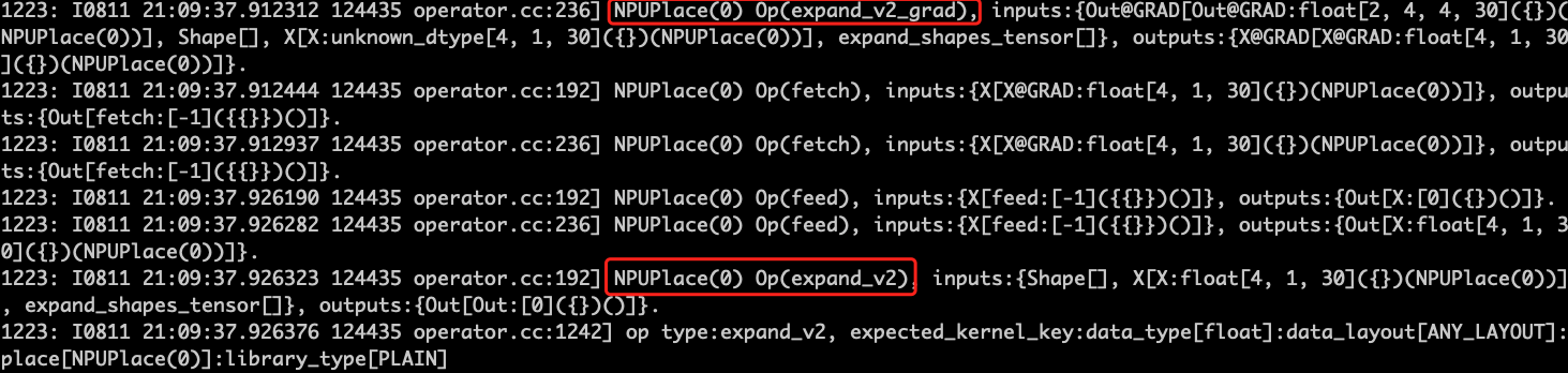 确认下,在CPU/CUDA代码中,对于self.shape = (-1, -1, -1, -1)的情况时如何处理的?需要看下expand_v2_op.h的CPU计算逻辑,应该最后可以得到一个正值的out_dims的结果,之后看下是否可以通过NPU的ExpandD或者BoradCastD等算子进行实现。