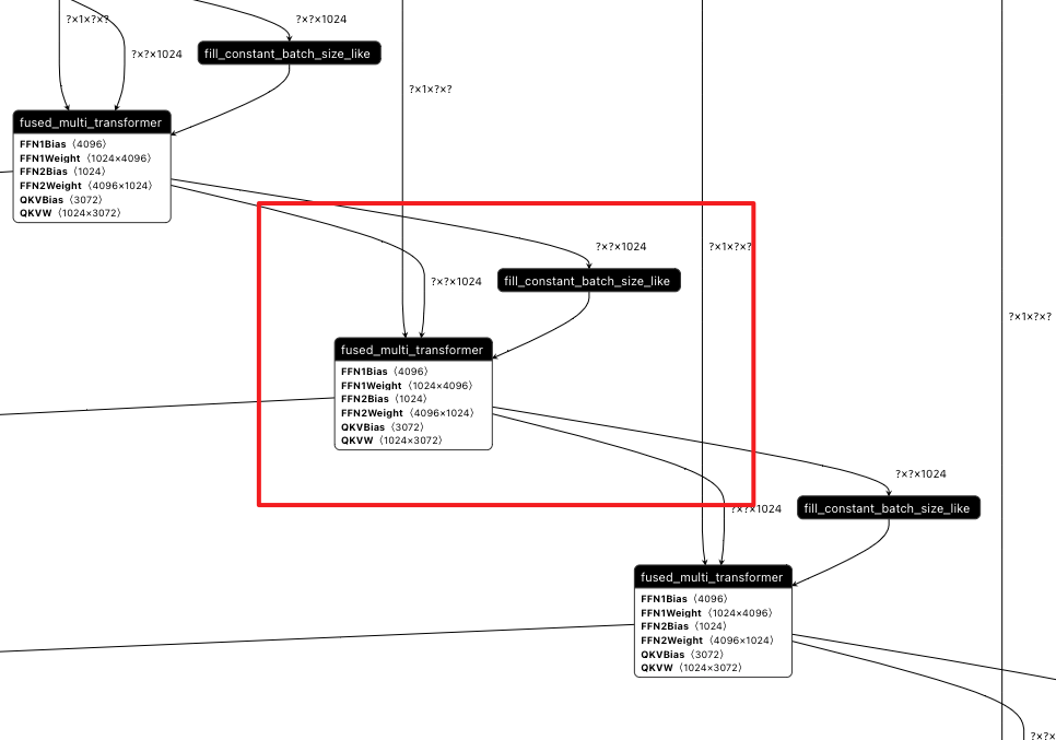 FusedMultiTransformer融合OP,如图中红框部分即为一层,用于推理加速fused_multi_transformer_decoder