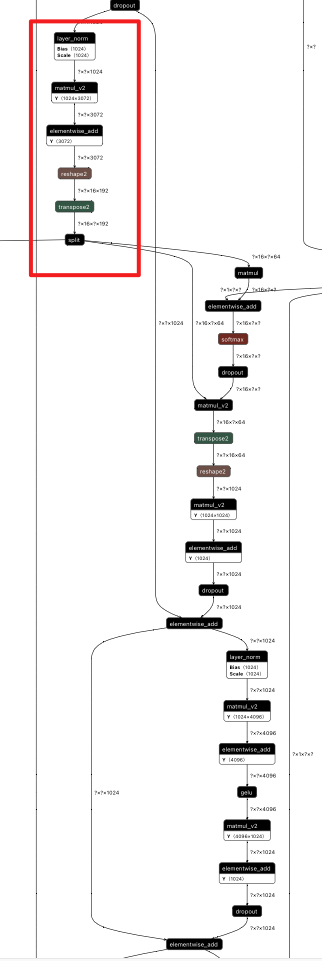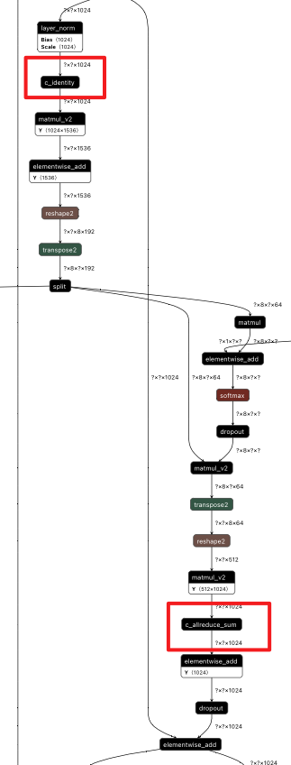 fused_multi_transformer_encoder/decoder_fuse_qkv结构与fused_multi_transformer_encoder/decoder类似,差别为Multi-Head Attention例QKV是concat成一个Tensor计算的,计算完后通过split分开,如图中红框所示add multi-devices passes: