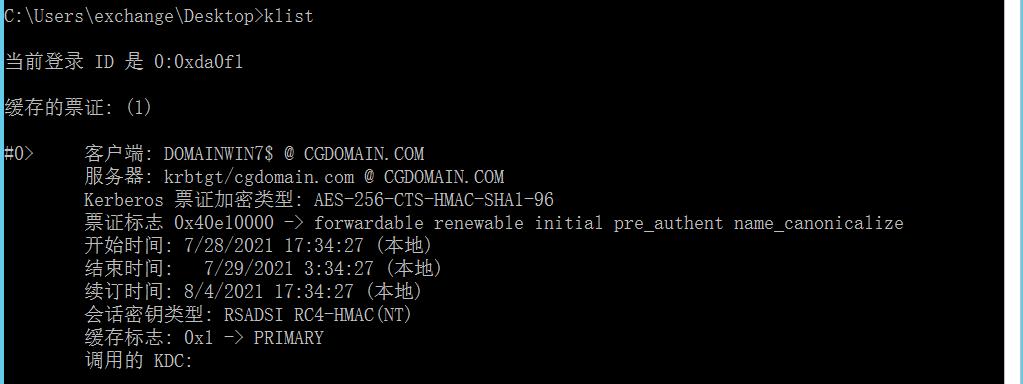 攻击成功后,会自动获取一个交互式shell,并会生成一个ccache文件供以后使用,这里默认会模拟administrator的身份,如果不存在administrator,可通过--impersonate 来指定目标用户,如果未添加-shell参数,只保存请求到的票据。