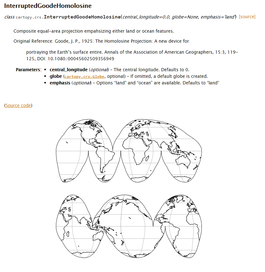 - The ocean emphasis for the Interrupted Goode Homolosine projection (imh_o) requires proj version 7.1.0 or later. - Option to select 'land' or 'ocean' emphasis - Increaed n resolution from 31 points to 91 points - Added docstring for class - Added images of both land and ocean views