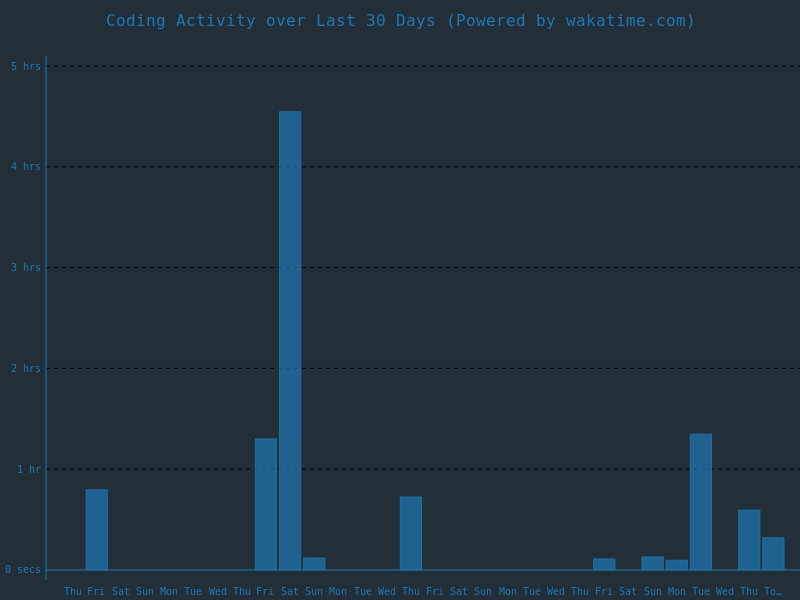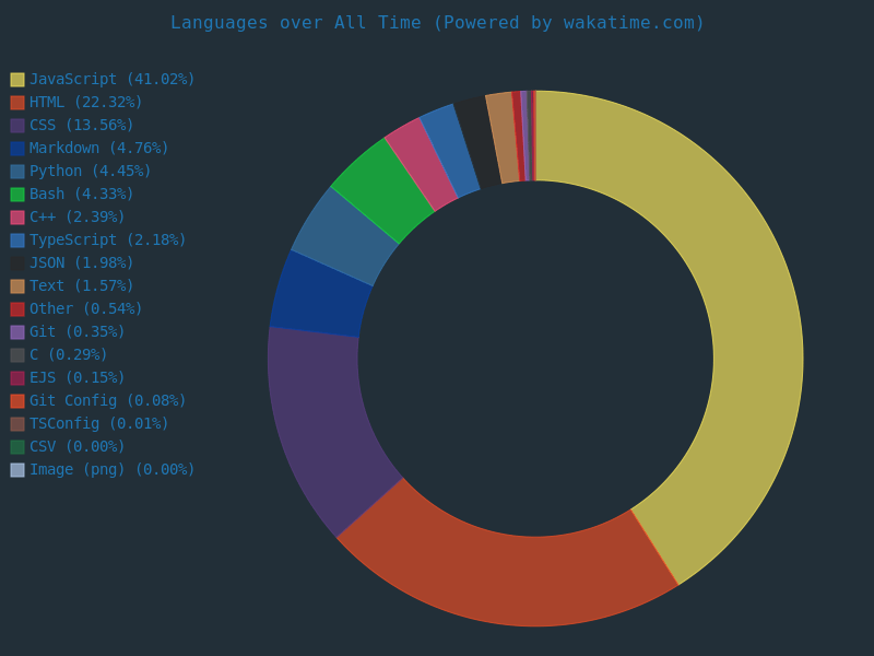 JavaScript               2 hrs 7 mins        โโโโโโโโโโโโโโโโโโโโโโโโโ   45.11 %
