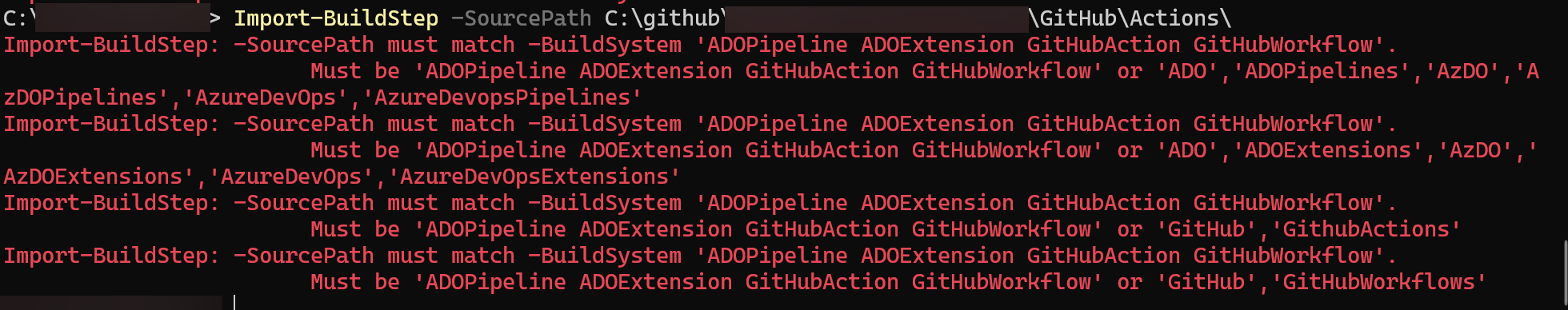 -SourcePath c:\Path\To\Folder\GitHubAction\ -BuildSystem GitHubActionit quietly continues, even with-Verbose, but no action is loaded - If I use only
