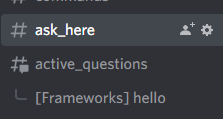 #ask_herechannel. Now they are moved under the#active_questionschannel. Everything else stays the same. So people still post in#ask_here, its just that the threads are created elsewhere.That way we can split the channels and move them further apart. For example