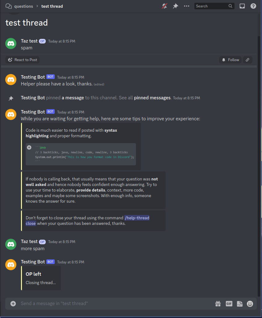 previously it used db to store authors and thread id, which is good we have all the threads in storage, but on jda side it used cache to search for the threads, which is not ideal coz not all threads are always cached, hence the errors. now i use retrieveActiveThreads method to get the threads which is not cache based and then i filter it and close the ones made by leaver. |