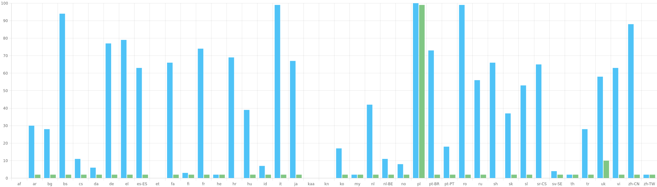 Our team adds translations in English on GitHub and they are synchronized with Crowdin where English can be translated into other languages. If you want to contribute to the translation, join Crowdin and read our short guide.
