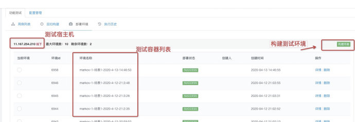 测试环境管理页