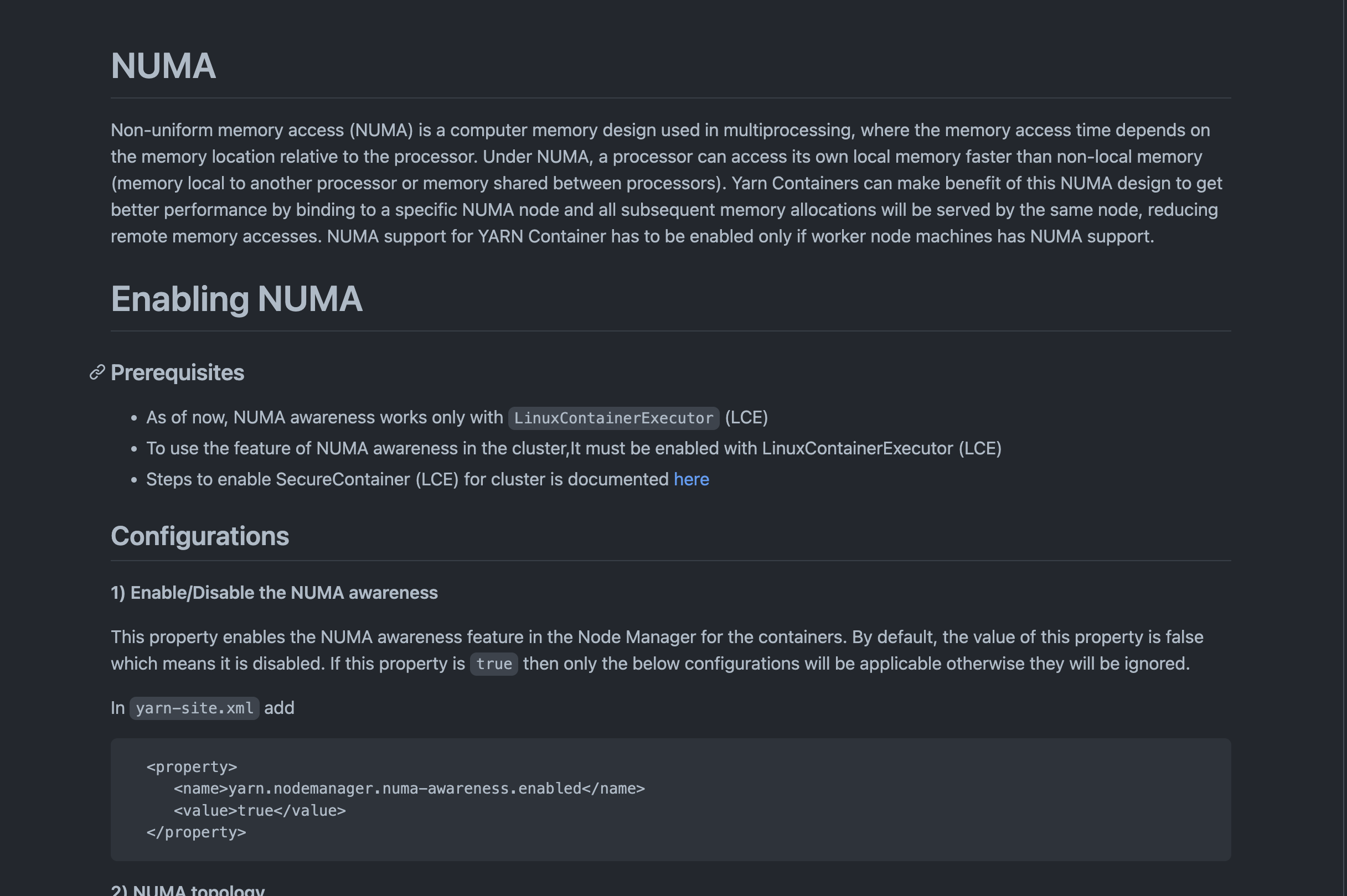 Can we also mention that NUMA support for YARN Container has to be enabled only if worker node machines has NUMA support.