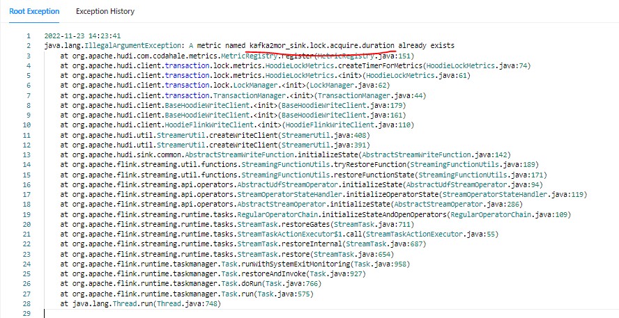 When running the MOR task on flink, we found that the taskmanager log repeatedly loaded related metrics, so we thought that the task thread did not isolate it during concurrent access, causing this error to occur in the next Task thread access. After the repair, the problem disappeared