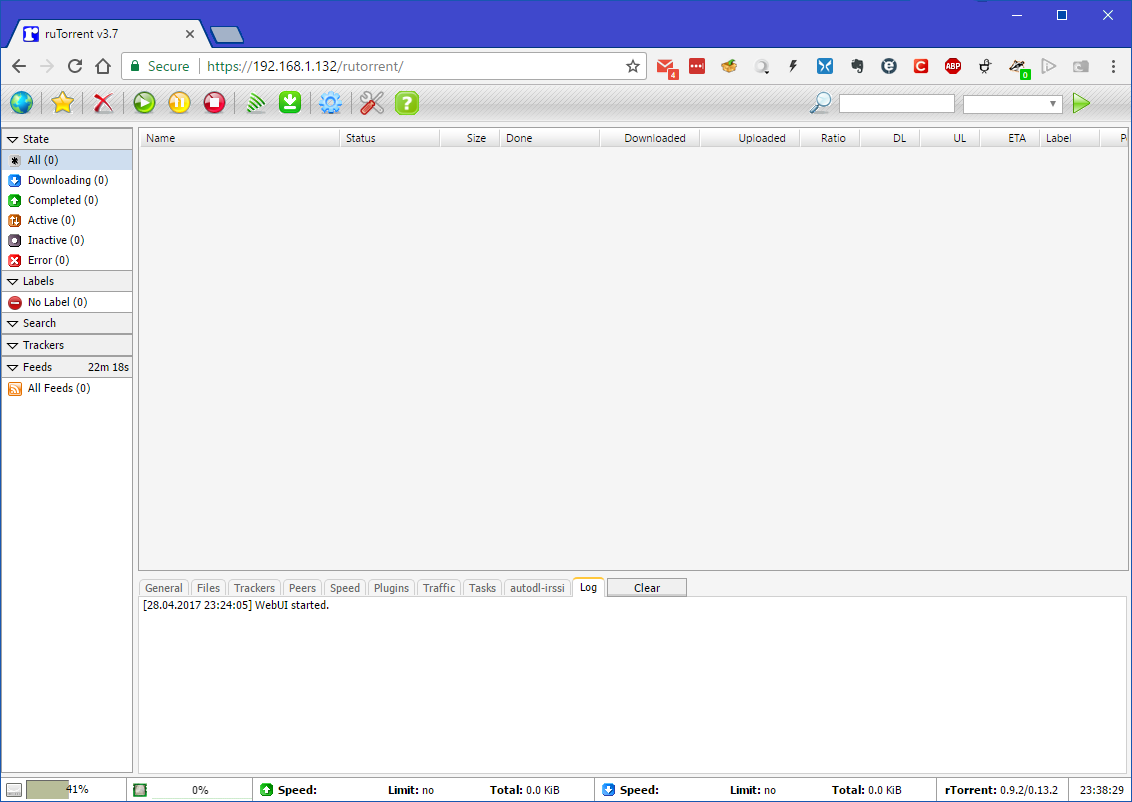 Load the rutorrent web page and you will see something like the following, show advanced if it is hidden, and proceed to the page.