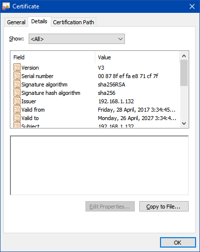 Click on the view certificate button, and select the details tab, you should see something like this