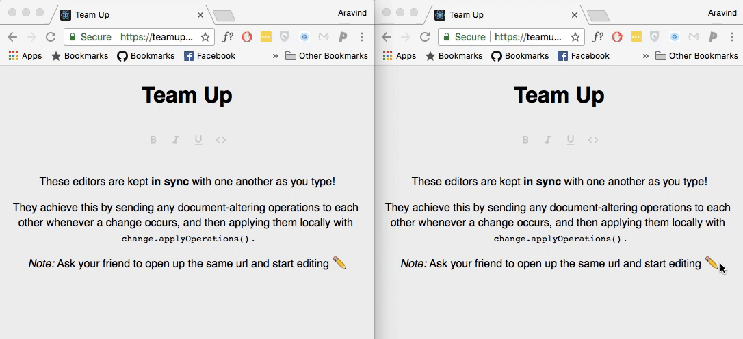 This is a React app which contains a Slate JS editor where we can write stuff (which syncs).