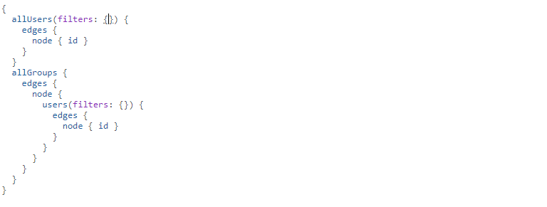 allGroups (filters: {nameIn: ["python", "development"]}){