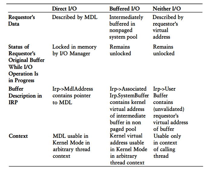 - This option is called Neither I/O because the driver does not request either Buffered I/O or Direct I/O.