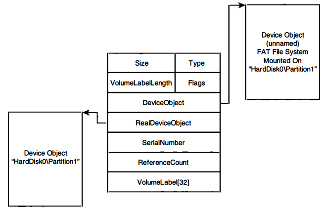 - The I/O Manager recognizes file-structured devices through the existence of a Volume Parameter Block (VPB) for the device. The VPB links the Device Object that represents the partition (created by the Class driver) with a Device Object that represents a mounted instance of a file system on that partition (created by an FSD).