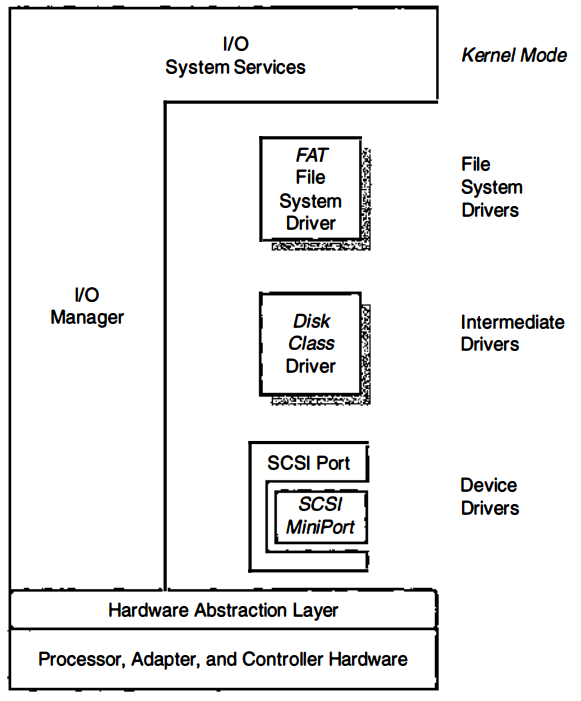 - Windows NT uses a layered driver model to process IO requests. In this model, drivers are organized into stacks.