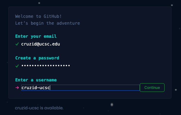 - If you are a UCSC Employee and have been asked to work on the project you will need a free github account associated with your UCSC email. This is a two-step process. The attributes below represent the recommended approach. You can sign up for an account at this link.