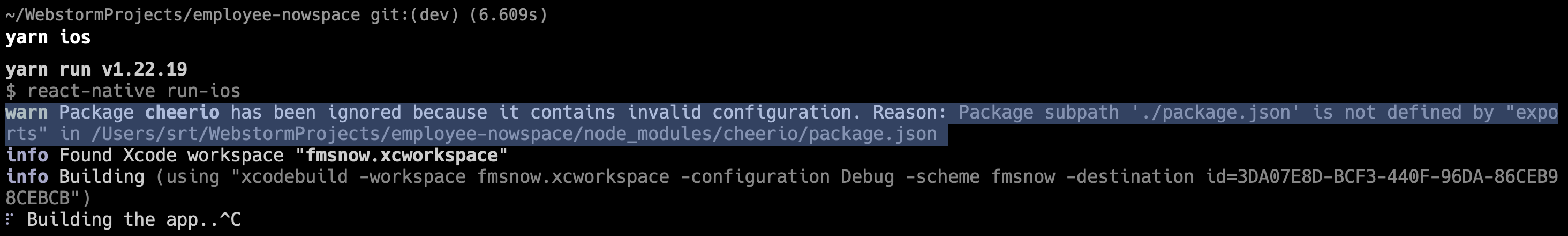 Need to export package.json for react-native project.