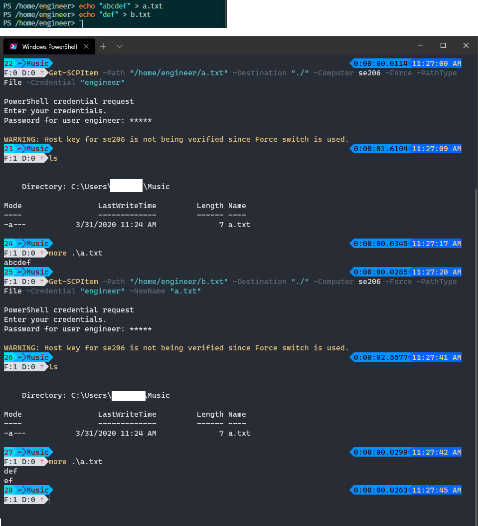 Get-SCPItem -Path "/root/b.txt" -Destination "./" -Computer localhost -Port 10022 -Force -PathType File -NewName a.txt - On local machine run