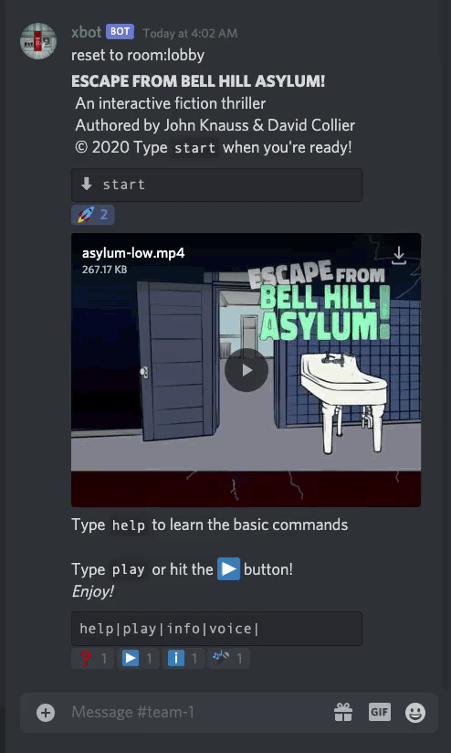This is an engine to run text adventure games inside Discord. It includes a full parser for a custom game scripting language.
